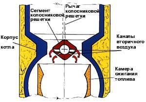 - Еще один значительный плюс пиролизных котлов ATMOS – это газифицирующая керамическая форсунка в дровяных котлах серии DC-S или запатентованная газифицирующая чугунная решетка в комбинированных котлах серии C-S, которая позволяет легко удалять пепел во время работы котла. На практике это значит, что не нужно каждый час «шевелить» угли, в отличии от классических котлов или пользоваться железной кочергой, как у чугунных.