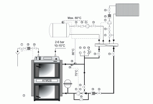 - В-третьих, котел ATMOS без смесительного узла будет работать абсолютно нормально, сохраняя принцип пиролиза! Смесительный узел способствует эффективности и максимальному сроку службы, да и обслуживать котел значительно легче.