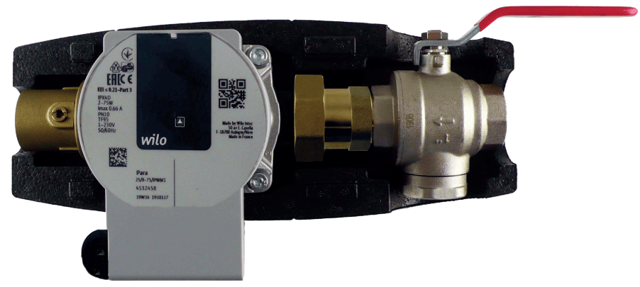 В комплект входит контроллер IR 14 RTC и насосная станция CSE TC W iPWM MFB (изолированная насосная станция с высокоэффективным циркуляционным насосом Wilo - с регулировкой скорости и данными по расходу iPWM - и с шаровым краном с магнитным фильтром).