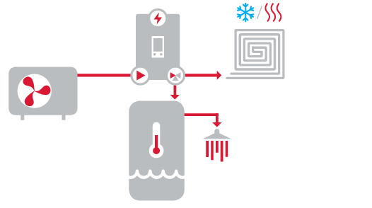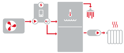 - 3-ходовой клапан для подключения водонагревателя косвенного нагрева.