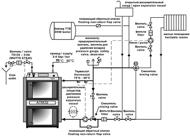 - как правильно обвязать котел на твердом топливе ATMOS? Наша организация профессионально занимается монтажом котлов и систем отопления.