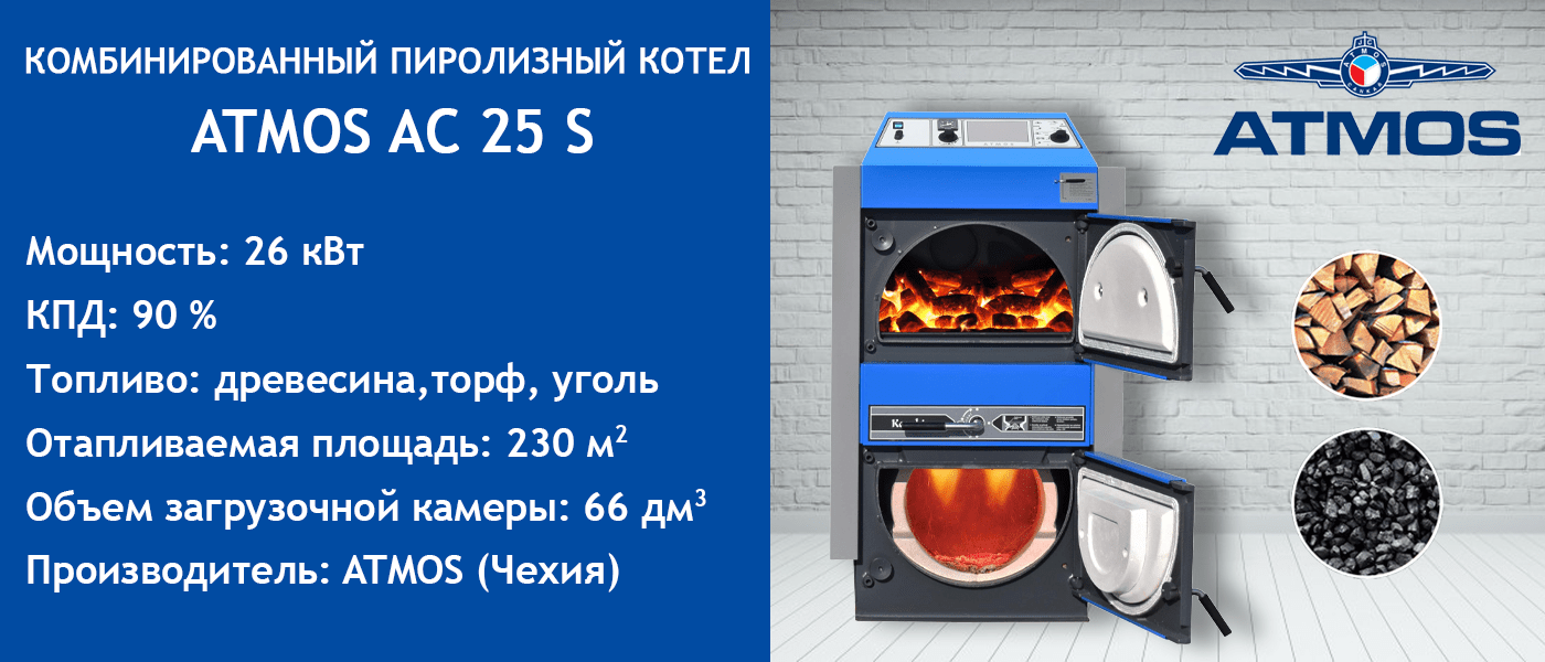 Неоспоримые достоинства пиролизного котла ATMOS серии AC 25 S: