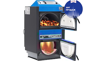 Мощность 26 кВт. Площадь обогрева до 230 м². Топливо: дрова, торфобрикет, каменный уголь. КПД 90%.
