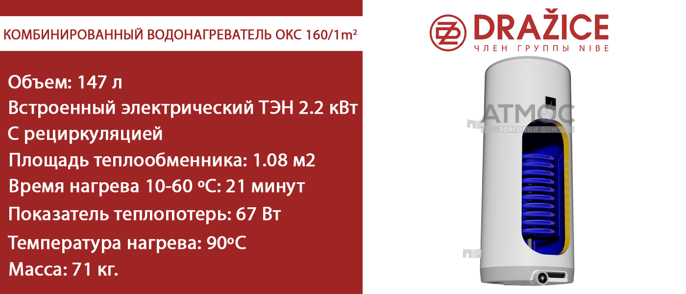 Купить водонагреватель навесной комбинированный с керамическим ТЭНом чешской фирмы DRAZICE у официального представителя завода в Беларуси - ООО "Торговый дом Атмос" в рассрочку по лучшей цене и доставкой по Минску и Беларуси.