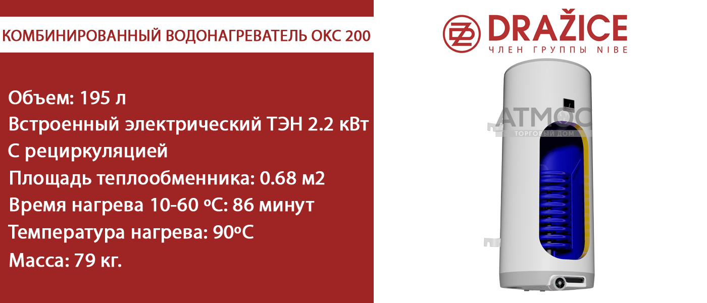 Технические характеристики комбинированного водонагревателя Drazice OKC 200: