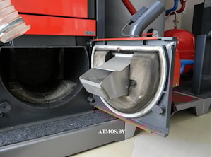 Все пиролизные котлы ATMOS оборудованы контуром охлаждения для предотвращения аварийных ситуаций и ревизионными люками для удобной чистки теплообменника.