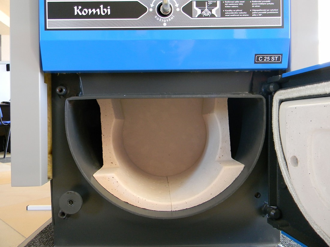 Применение армированной керамики – отличительная черта чешских твердотопливных котлов ATMOS. Керамика предотвращает прогорание корпуса котла и увеличивает температуру горения, делая процесс сжигания топлива максимально эффективным.