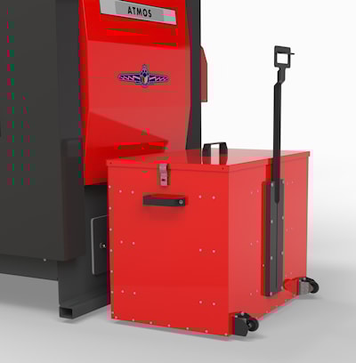 В стандартный комплект поставки пеллетного котла ATMOS D 85P входит зольник (ящик для золы) самого большого объема - 160 литров.
