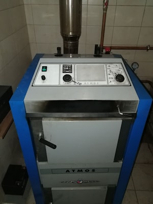Практика показывает, что твердотопливные котлы независимо от производителя лучше монтировать с теплоаккумулятором. В этом случае твердотопливный котел работает лучше и безопаснее, а пиролизный котел еще и экономичнее. Расход дров был бы на процентов 30 меньше. Конструкция котла ATMOS адаптирована для автоматизированного отопления пеллетами несмотря на то, что котел выпущен в 2008г. Это современное решение сделать отопление более комфортным с небольшими финансовыми затратами. Что касается дымохода. Действительно, по конструкции дымохода есть некоторые замечания, которые влияют, в первую очередь, на тягу. Но, вероятно, при таких стесненных условиях сделать как-то иначе дымоход нет возможности.