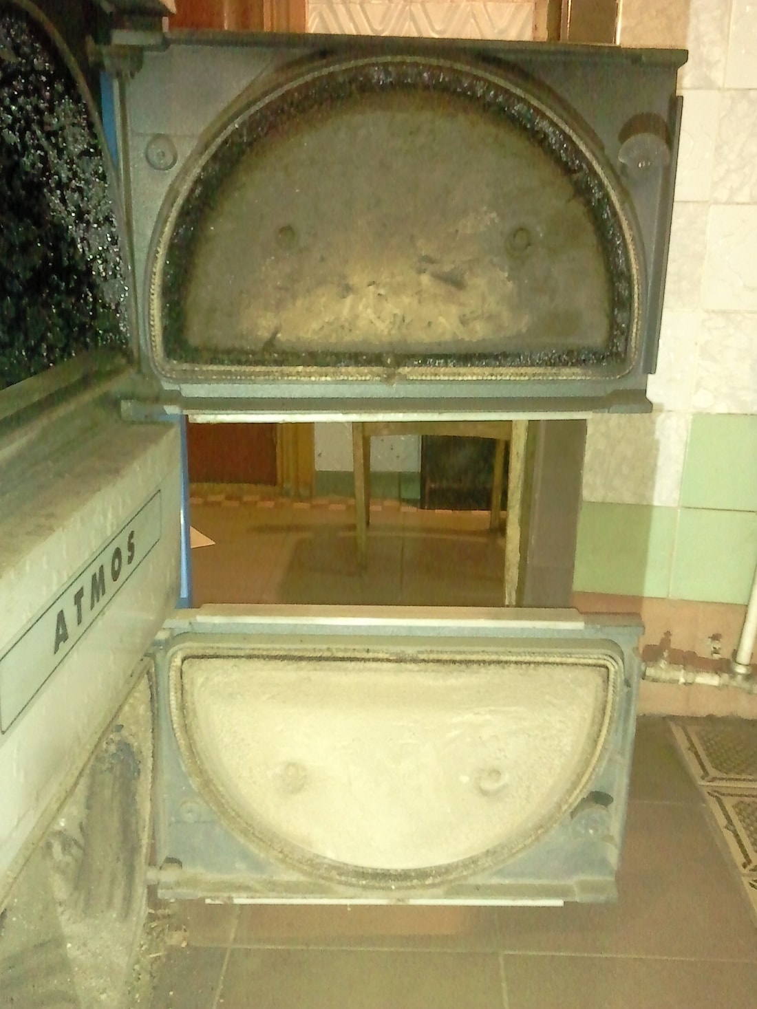 Хотя они и истлели, причина задымления при открывании двери топки была в закупорке дымохода золой (достал три ведра золы).