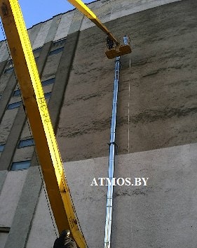 Монтажные работы газогенераторного твердотопливного котла ATMOS DC100 с аккумулирующей емкостью на 2000 литров и установка дымохода в производственном здании в г. Вилейка. Общая высота дымохода 35 метров.