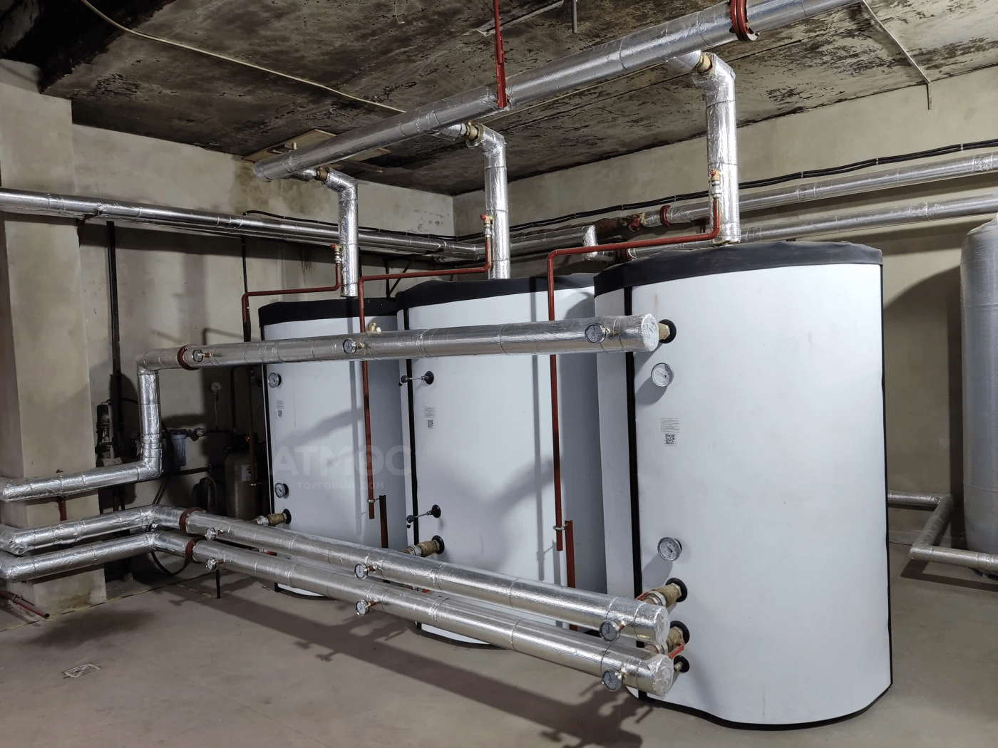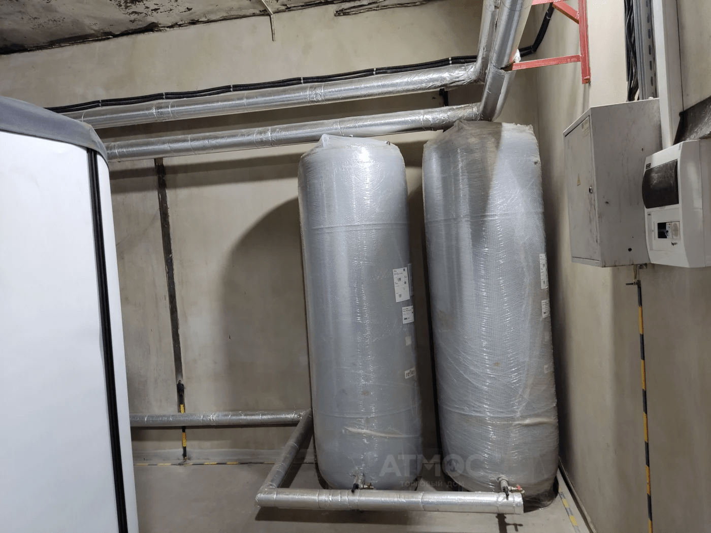 Проектом предусмотрена установка аккумулирующих емкостей общим объемом 6000 литров и расширительных баков Reflex N1000.