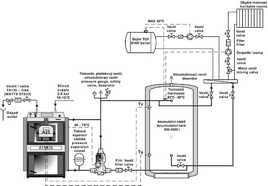 Варианты установки пиролизного котла для дров, торфобрикета, пеллет ATMOS