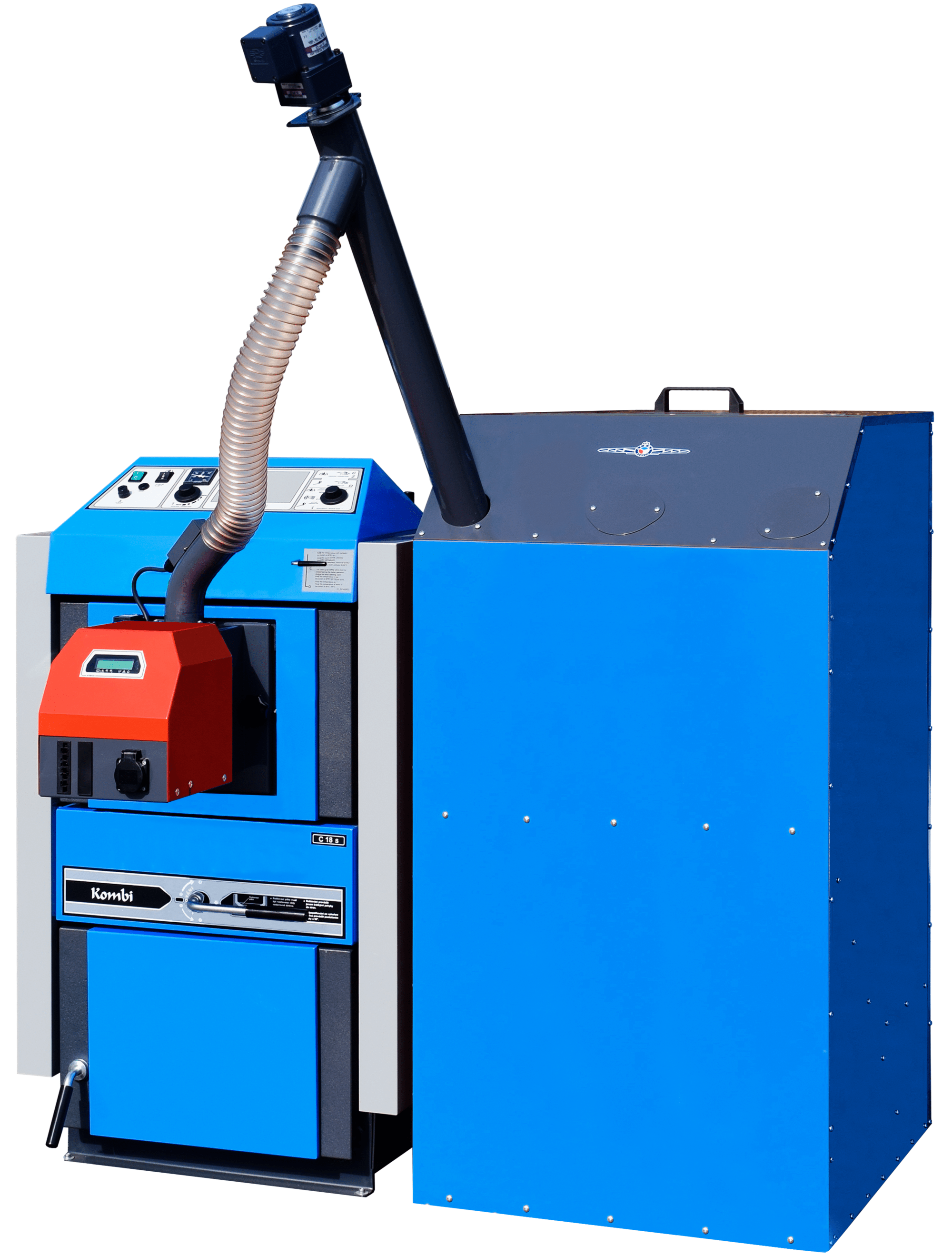 Управление горелкой: посредством электронной системы регулировки, управляющей работой шнекового транспортера, двух спиралей для розжига и вентилятора горелки. Электроника защищена предохранительным термостатом котла, защитным термостатом на устройстве подачи пеллет в горелку, датчиком оборотов вентилятора и фотокамерой для отслеживания пламени.