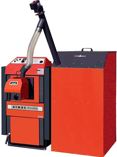 Комбинированный пиролизный котел ATMOS DC 18 S с пеллетной горелкой ATMOS A25