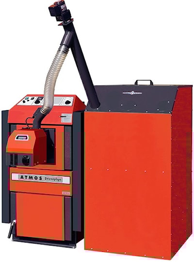 Комбинированный пиролизный котел ATMOS DC 25 S с пеллетной горелкой ATMOS A25