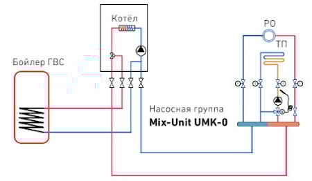 - MK - смесительная группа с возможность установки автоматического сервопривода.
