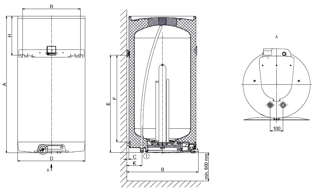 Основные размеры DRAZICE OKСE 125 2/6 кВт