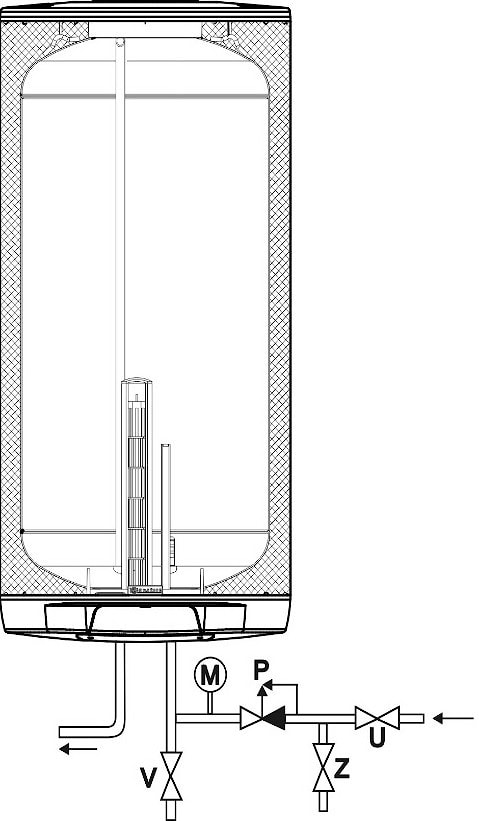 ![]() | U - запорный клапан; Р - предохранительный клапан; М - манометр; Z - испытательный клапан; V - сливной клапан. |