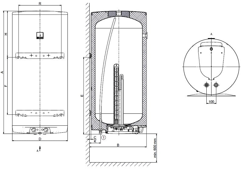 Основные размеры DRAZICE OKСE 200 2/4 кВт