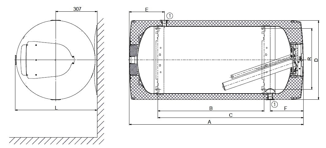 | Размеры, мм. | А | B | С | D | E | F | L | R |