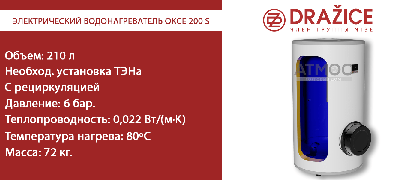 ООО "Торговый дом "АТМОС" - официальный представитель чешского производителя водонагревателей DRAZICE в Беларуси.Позвоните нам +375 29 374 13 45 или оставьте запрос, чтобы купить электрический бойлер DRAZICE OKCE 200 S со скидкой и получить дополнительные бонусы.