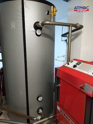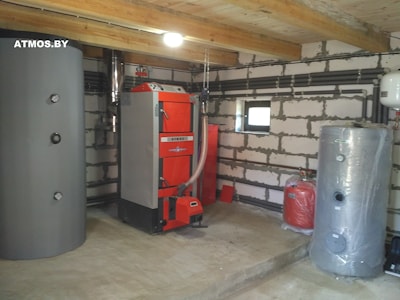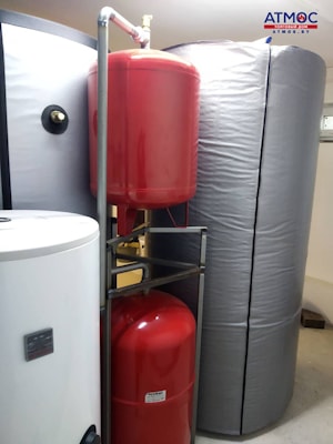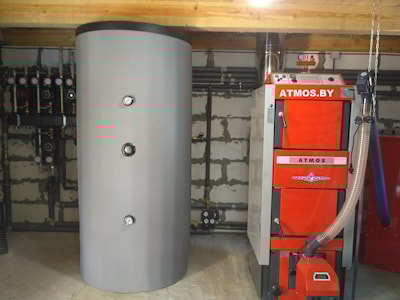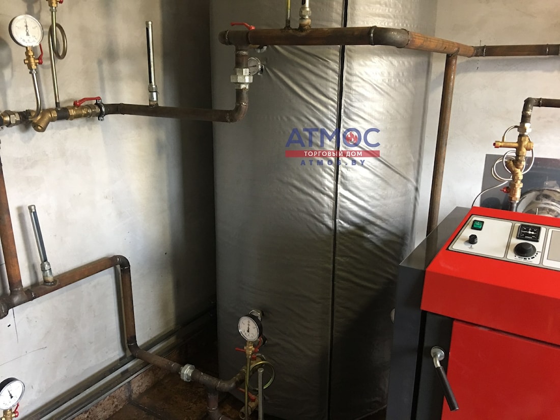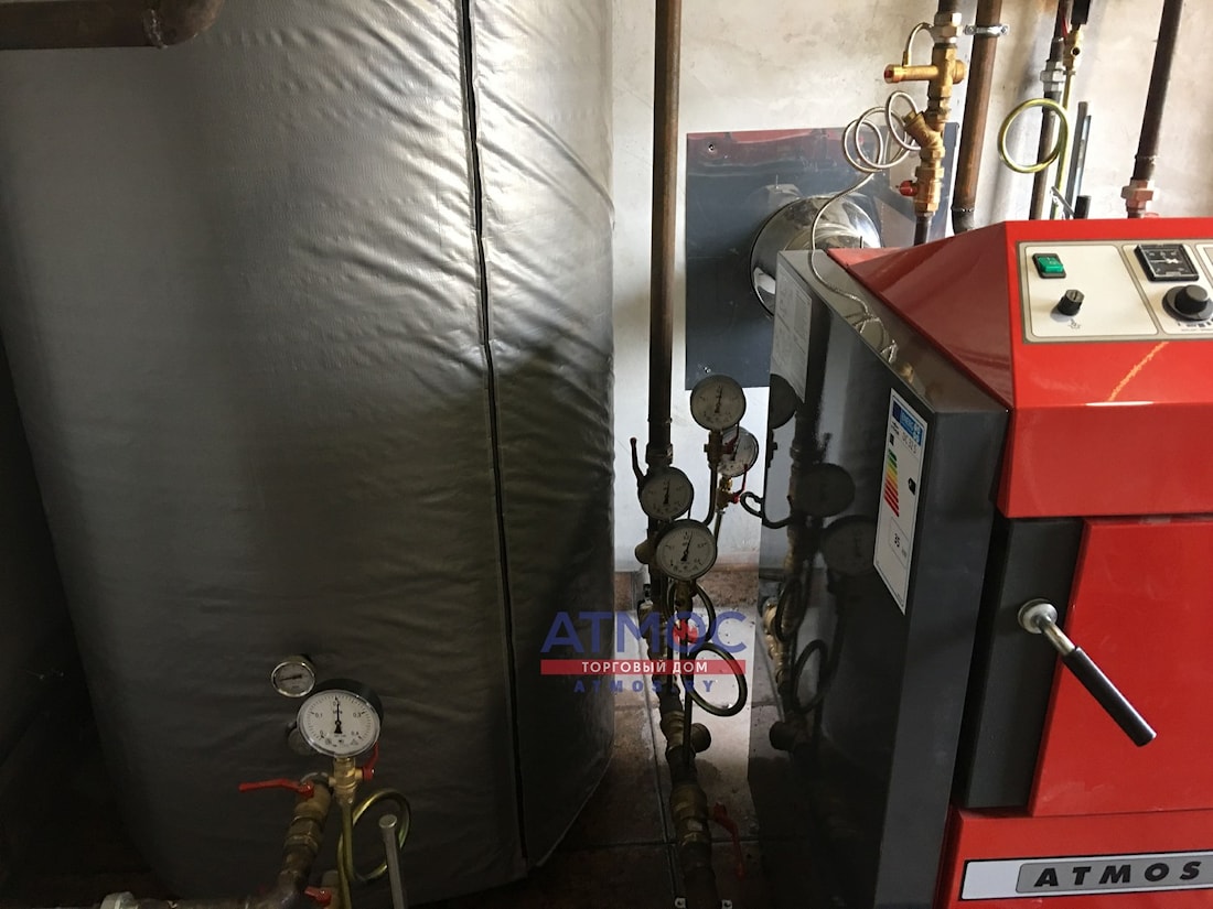 Монтаж пиролизного котла ATMOS DC32S с теплоаккумуляторами.