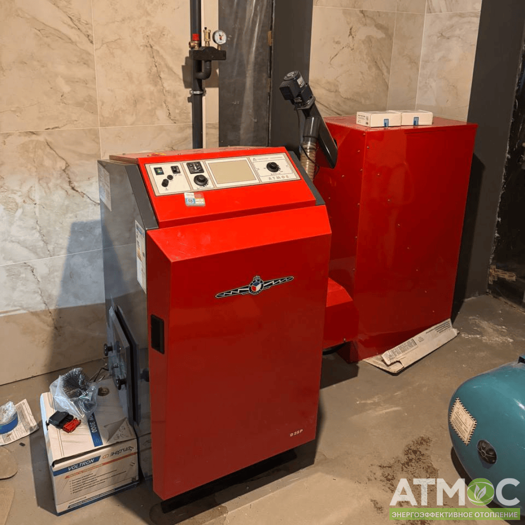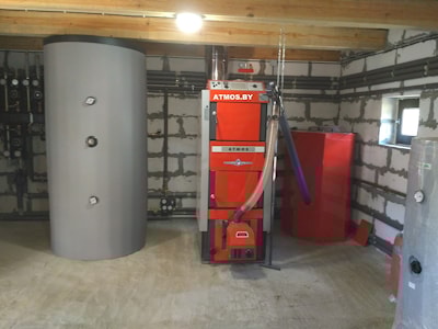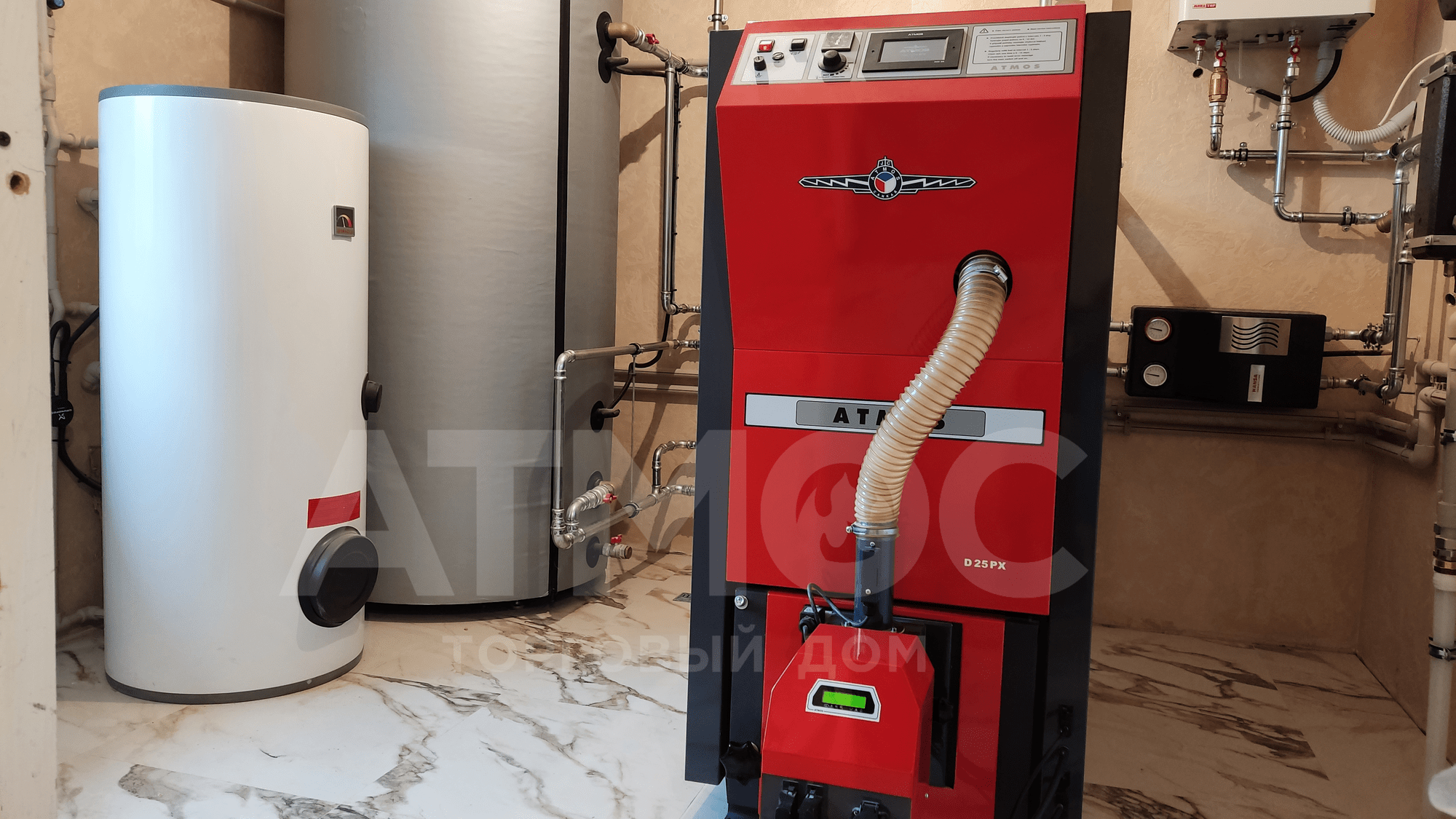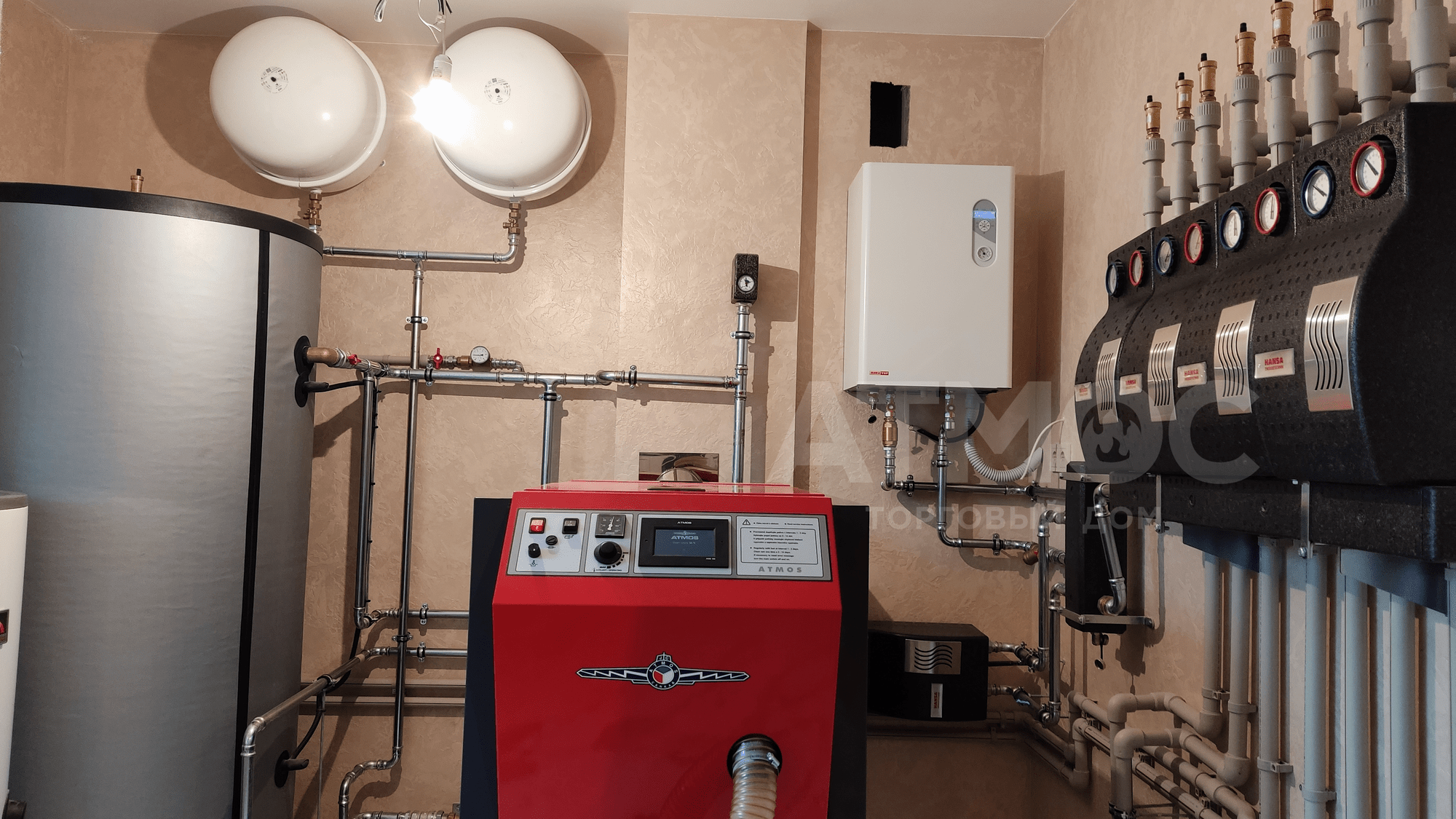 Монтаж котельной в частном доме с пеллетным котлом ATMOS D25PX и электрическим котлом MORA-TOP.