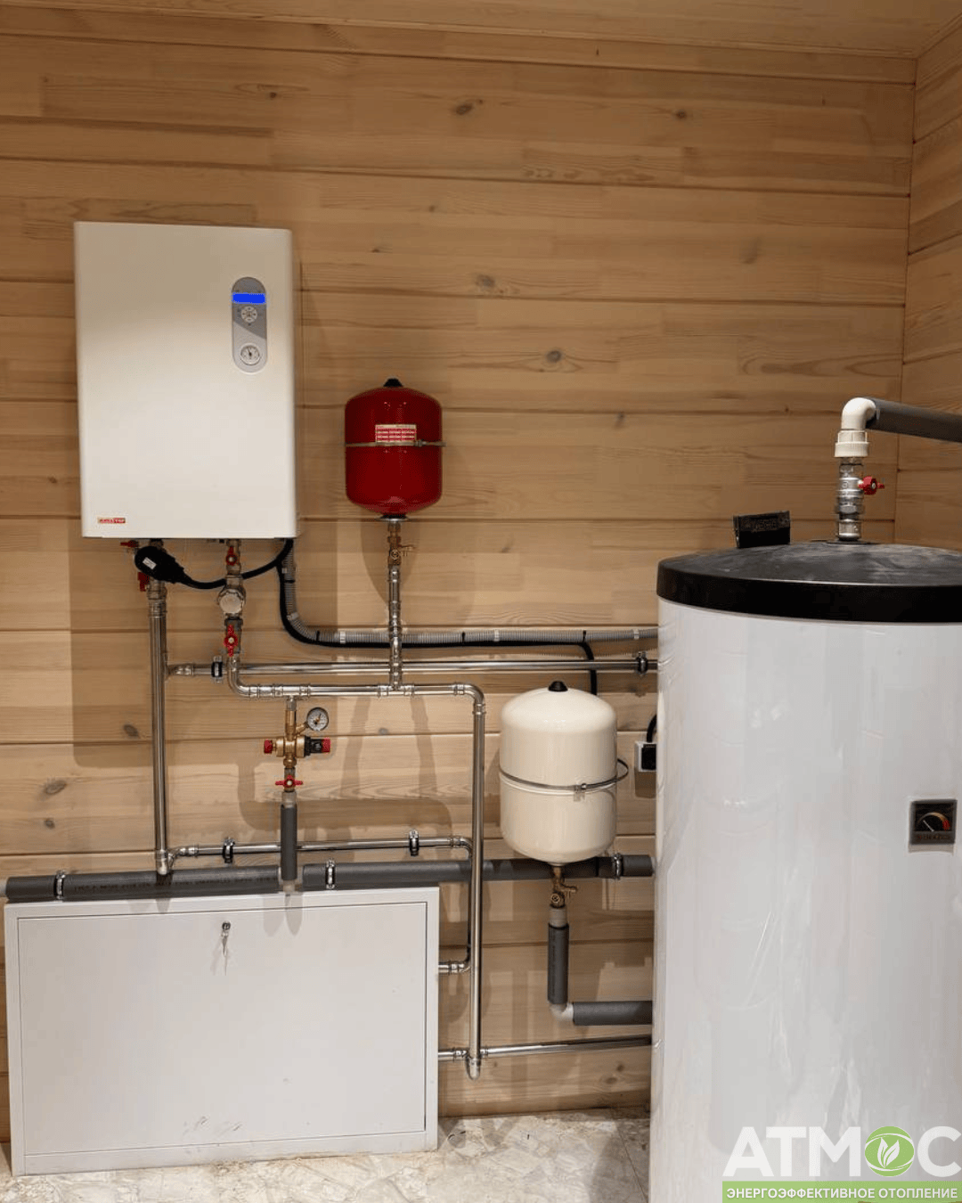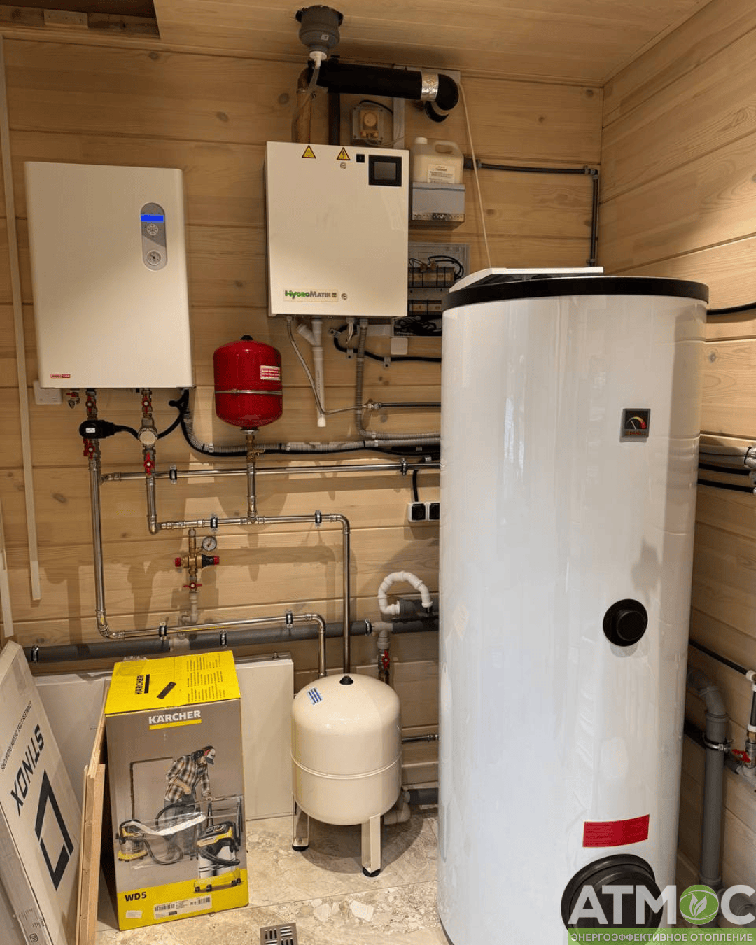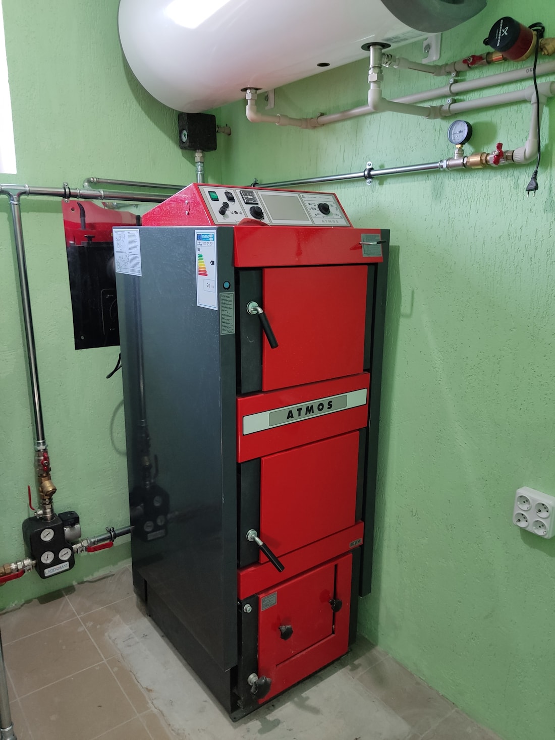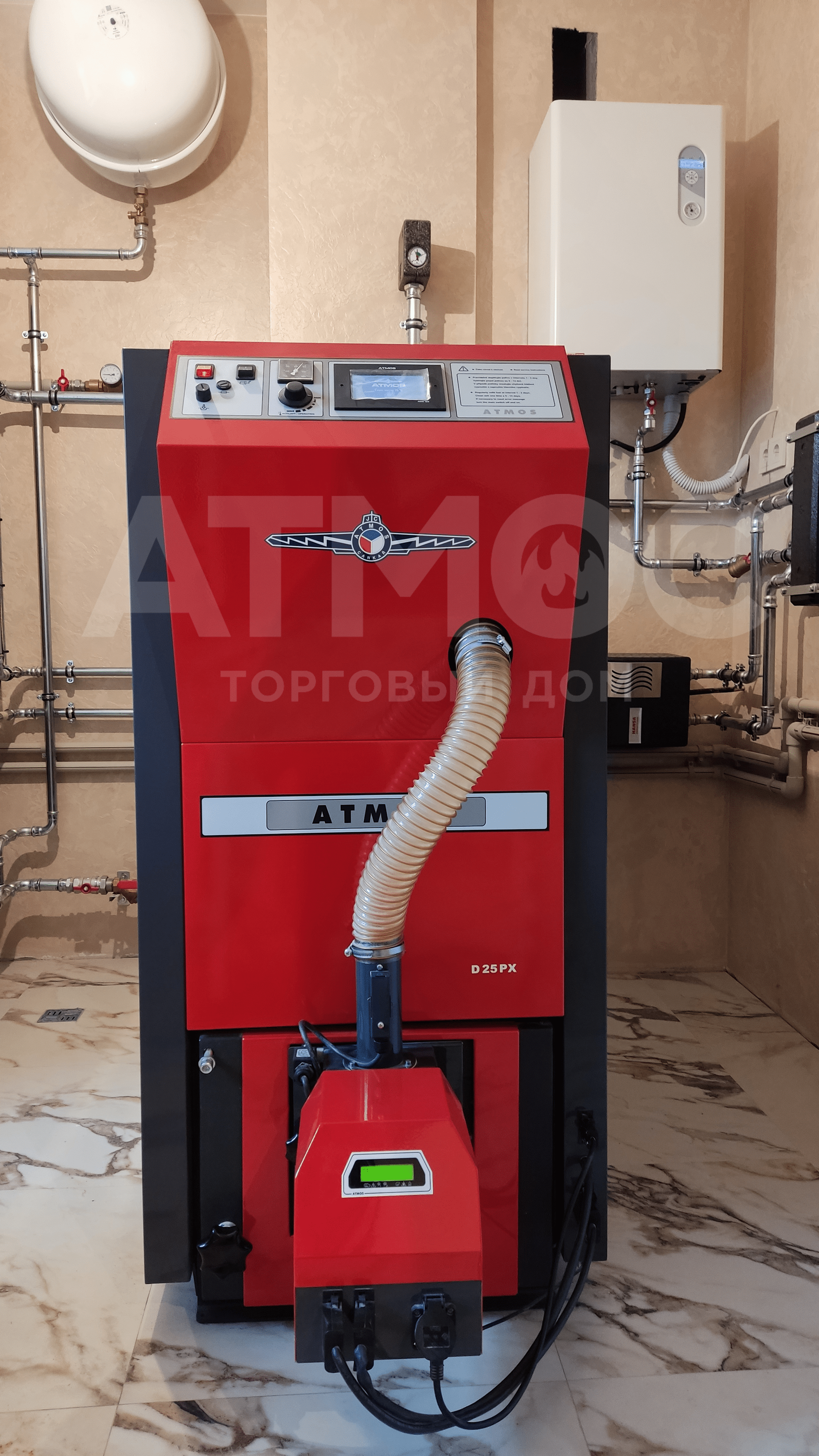 Монтаж котельной в частном доме с пеллетным котлом ATMOS D25PX и электрическим котлом MORA-TOP.
