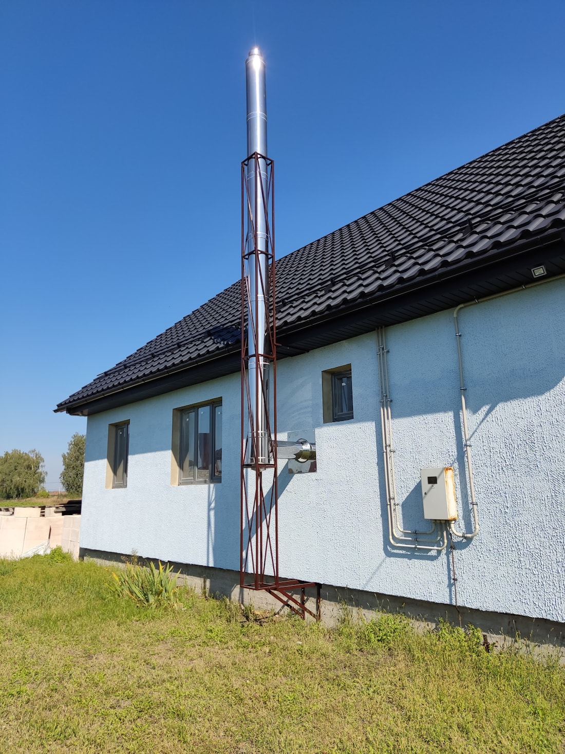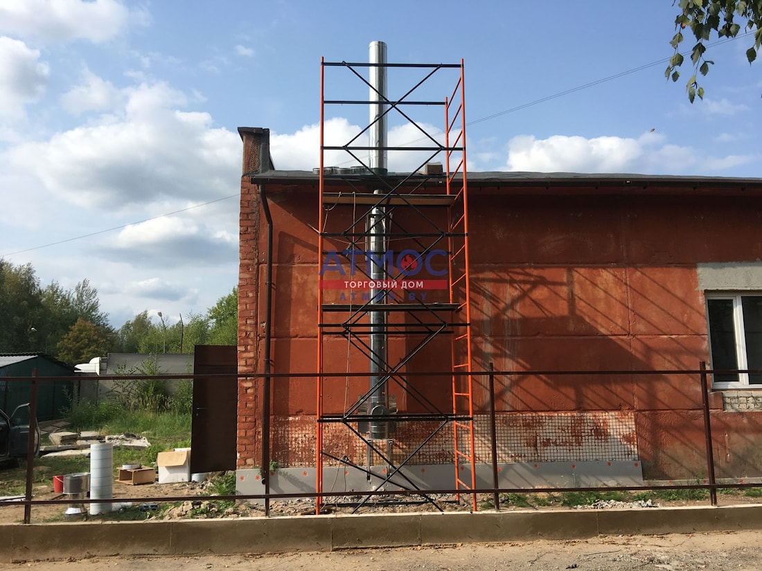 Монтаж твердотопливного пиролизного котла ATMOS DC40SX и установка дымохода.