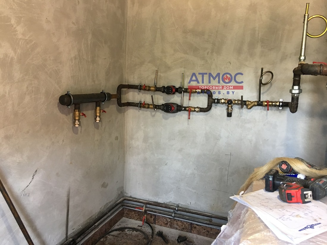 Монтаж отопления в загородном доме с пиролизным котлом ATMOS и солнечными коллекторами REGULUS.
