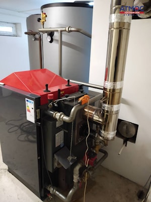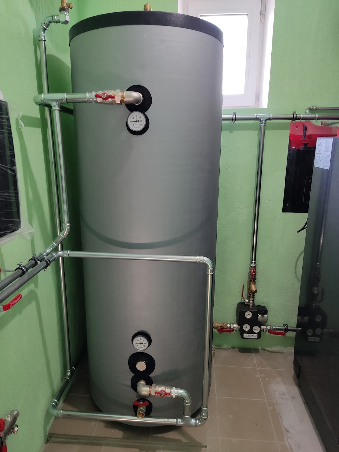 В рамках данного проекта была реализована современная, высокоэффективная система отопления с использованием передового инженерного оборудования. Решение построено на сочетании автоматического пеллетного котла ATMOS D25P, буферной емкости TESY объемом 1000 литров с теплообменником, водонагревателя косвенного нагрева DRAZICE OKC 250 NTRR/BP с двумя теплообменниками для подключения солнечных коллекторов, что обеспечивает максимальную энергоэффективность и эксплуатационную гибкость.