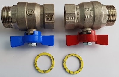 - 2 шаровых крана с плоским уплотнением для присоединения к стрелке с накидной гайкой 1¼" и плоским уплотнением.