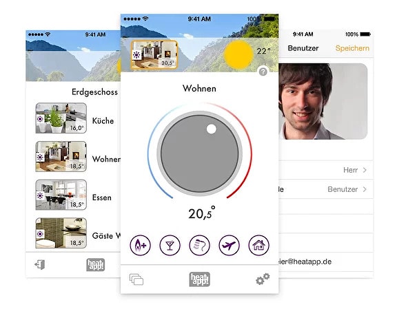 Независимо от того, радиаторное ли это отопление или теплые полы, частный дом, собственная или съёмная квартира, — с помощью heatapp! легко усовершенствовать существующую систему отопления. Вы регулируете температуру в каждом помещении индивидуально, делая отопление в доме в высшей степени энергоэффективным и крайне комфортным. Управлять системой можно с экрана смартфона через приложение по домашней сети или через интернет.