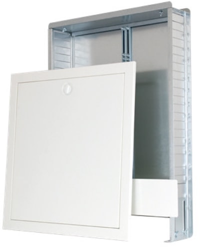 Шкаф распределительный для скрытого монтажа глубиной 110 мм предназначен для компактного размещения узла подключения сантехнической разводки.