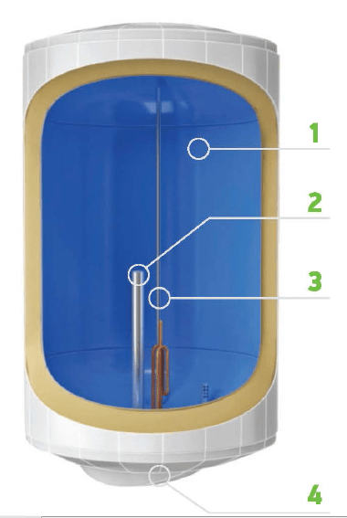 3. Особенностью данного бойлера комбинированного нагрева Теси Макс Еу 200 является трубка забора воды, которая изготовлена из нержавеющей стали. Данное решение является долговечным и надежным, так как сохраняет объем горячей воды в течение всего срока службы водонагревателя.