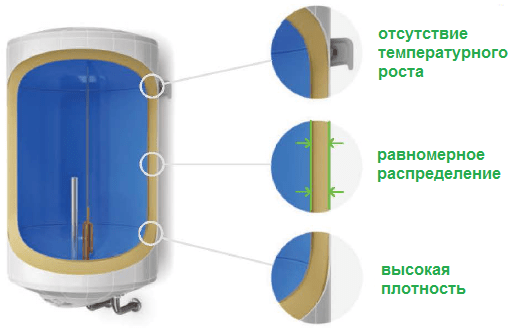 Точное параллельное выравнивание бака водонагревателя и внешнего корпуса гарантирует высокую плотность и равномерное распределение изоляции.