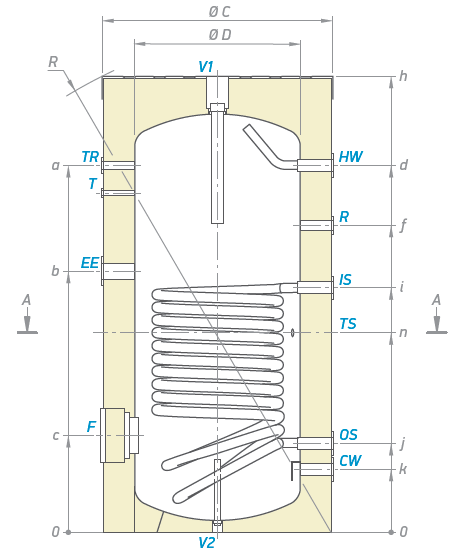 - Для дополнительной защиты косвенного бойлера от известковых отложений установлен магниевый анод. Благодаря защитным функциям магниевого анода срок эксплуатации бойлера увеличен на 50%.