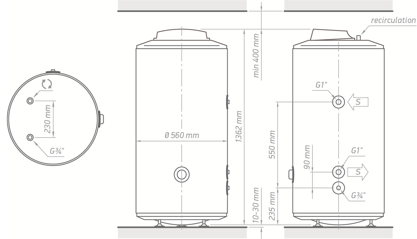 7. Для комфортного монтажа в комплектации бойлера косвенного нагрева предусмотрены регулируемые по высоте ножки и сбросной клапан.